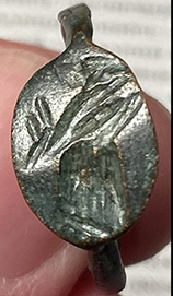 Byzantine Empire, c. 8th-11th century AD. Fascinating bronze ring depocting 3 saints or apostles in a boat! US size 9 1/2, black patina, light earthen deposits. #JR2207: $199 SOLD
