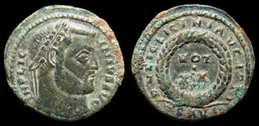 Licinius I, 308-324 AD. Bronze follis, struck Jan-Feb 313 AD.