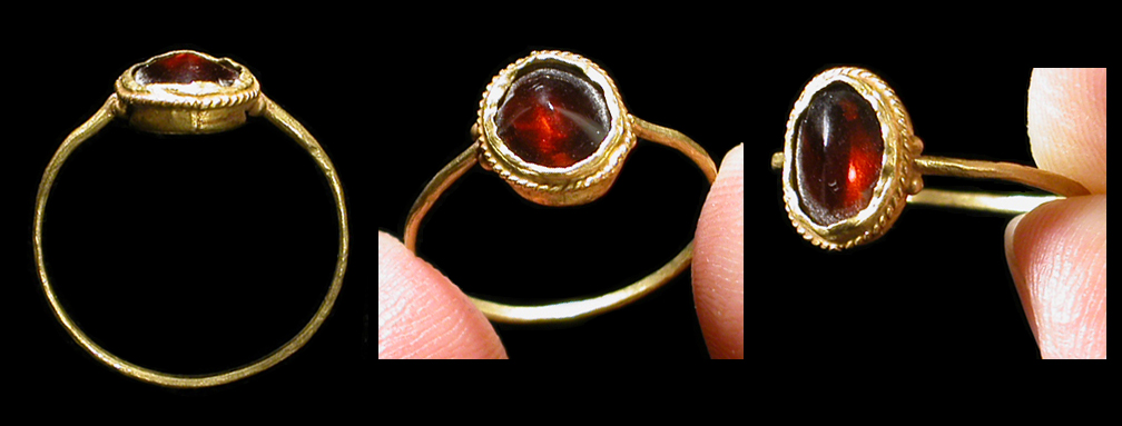 Ancient Rome, c. 1st-2nd century AD. Magnificent gold ring, set with original red glass inlay. Absolutely gorgeous and wearable! US size 6 3/4. ex-Arte Primitivo. #JR2022: $1200 SOLD