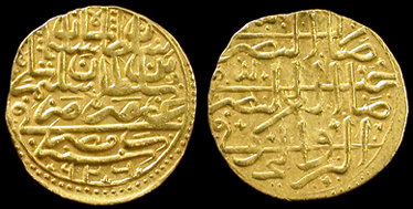Ottoman Empire. Suleyman I The Magnificent, 926-994 A.H. (1520-1566 AD). Stunning gold sultani. 20.81 mm (13/16") diameter, 3.55 g. Great coin with excellent detail! Bright golden tone. #0450x2: $450 SOLD