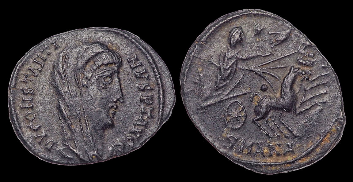 on a coin! Divus Constantine I the Great, post-mortem coins struck after his death, 337-340 AD, showing Constantine in a quadriga (chariot); the Hand of God reaching down to bring him into heaven.