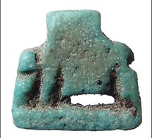 Ancient Egypt. New Kingdom, 18th Dynasty. ROYAL Egyptian steatite plaque of pharaoh Amenhotep III & Queen Tiye, c. 1402-1365 BC. One side reads "Amenhotep" in hieroglyphs, with symbols of power; the other side reads "King's Wife Tiye" in hieroglyphs. Measures 17x15x4 mm, holed-through for suspension. Extremely well-preserved, with ancient earthen and mineral deposits in the details. Ex K. Ramage collection, Oregon; previously in the Joel L. Malter personal collection, Encino, CA, purchased in the 1980's.