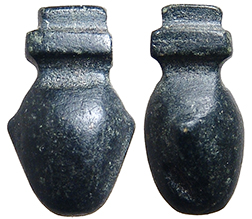 Ancient Egypt. Late Dynastic Period, c. 664 - 30 BC. Nice stone double ostrich feather amulet. H: 20mm. Ex Boston Museum of Fine Arts; previously in the collection of Horace L. Mayer who loaned and gifted items to the museum throughout the 1930's-60's. After his passing much of his remaining collection was gifted to the museum. #AE2836: $125 SOLD