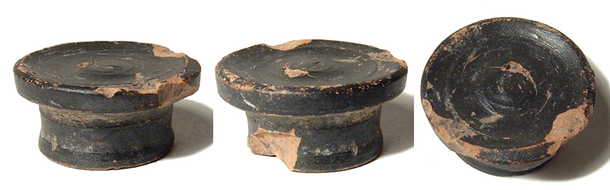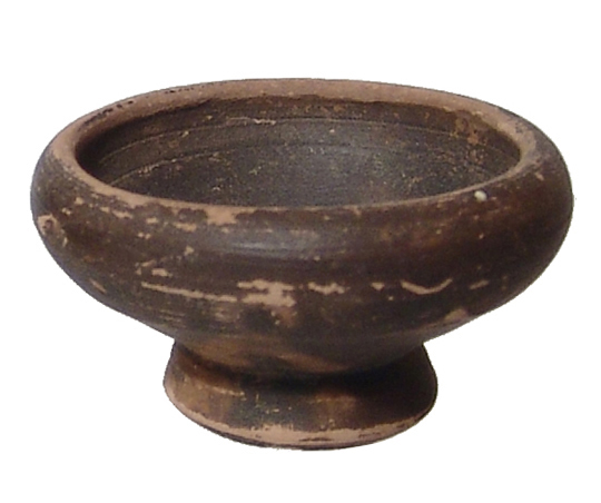 Ancient Greece, c. 4th Century BC. Nice small Greek ceramic cellar (small dish). Black-glazed, with small ring foot, nicely preserved. Dia: 1 3/4" (4.3 cm). Ex New York private collection of an archaeologist, acquired in the 1960's. #AG2258: $99 SOLD