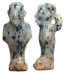Ancient Nubia! c. 2nd century BC. An incredibly rate carved stone amulet of a standing deity, wearing an elaborate hairdo. This is the only Nubian amulet I have ever had, and In shoukd probably keep this one for my own collection! H: 20mm. Ex P. Vigil estate collection, New Mexico, primarily acquired from Argosy Art & Artifacts between 3/4/1985 and 5/9/1986. #PV040: $250 SOLD