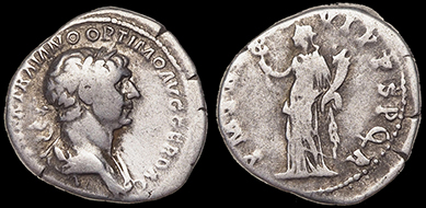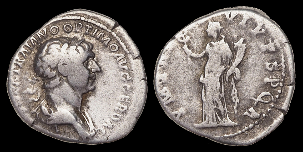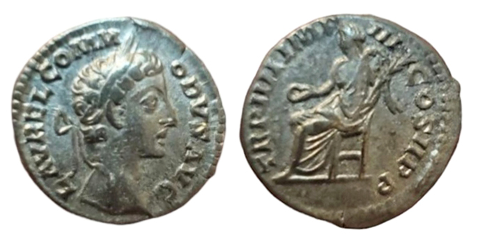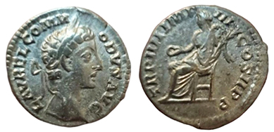 P M TR P IIII COS PP. ref: RIC 50, RSC 276. 19.5 mm, 2.56 g. Dark areas of earthen deposits. #CR2614: $75 SOLD