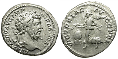 Severus Alexander, 222-235 AD. Silver denarius struck 226 AD.