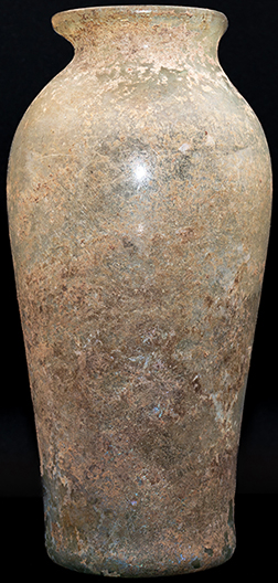 Biblical Judaea, c. 1st century BC / 1st century AD. Large glass tear-vial. Excellent irridescent sandy-green coloration. 105 mm (4 inches) tall! #6320: $299 SOLD