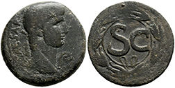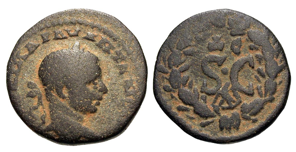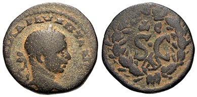 Provincial Rome. Claudius, 41-54 AD. Neat bronze As, Seleucis and Pieria, Antioch mint. Struck 41-41 AD. Laureate head of Claudius right / Large SC, all within wreath. 22 mm, 7.1 g. ex Rönesans Salzgitter, Germany. #CR3612: $125 |